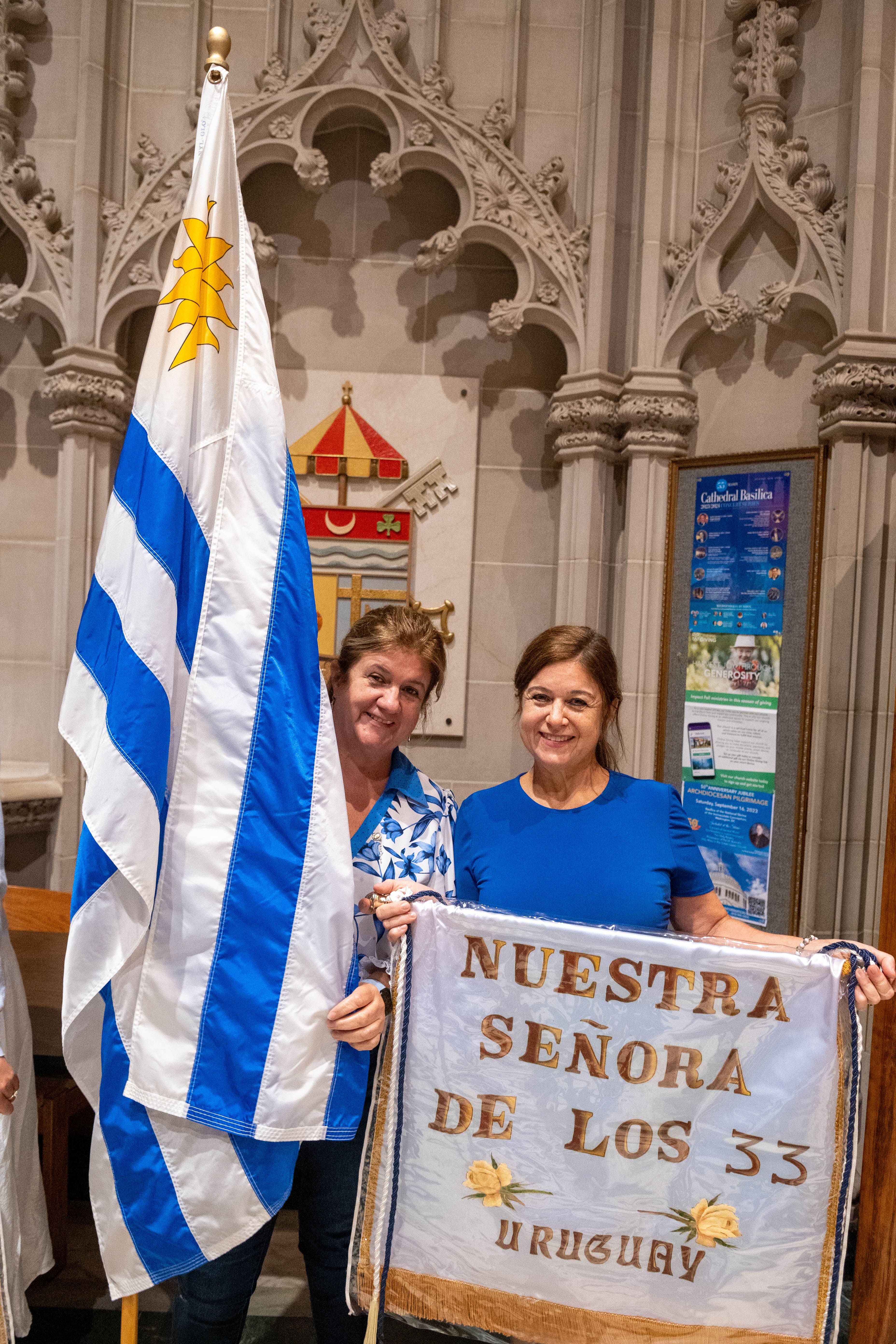The most prominent feature of this annual celebration is the opening procession. Participants in the procession don cultural attire, bear the flags of their respective countries of origin, and carry silk banners featuring the name of their nation’s corresponding advocation of the Virgin Mary. The Cathedral pews were occupied by both Spanish-speaking and non-Spanish-speaking attendees, some holding flags and others dressed in traditional attire, all proudly expressing their national pride and smiling as their country’s flag passed by.