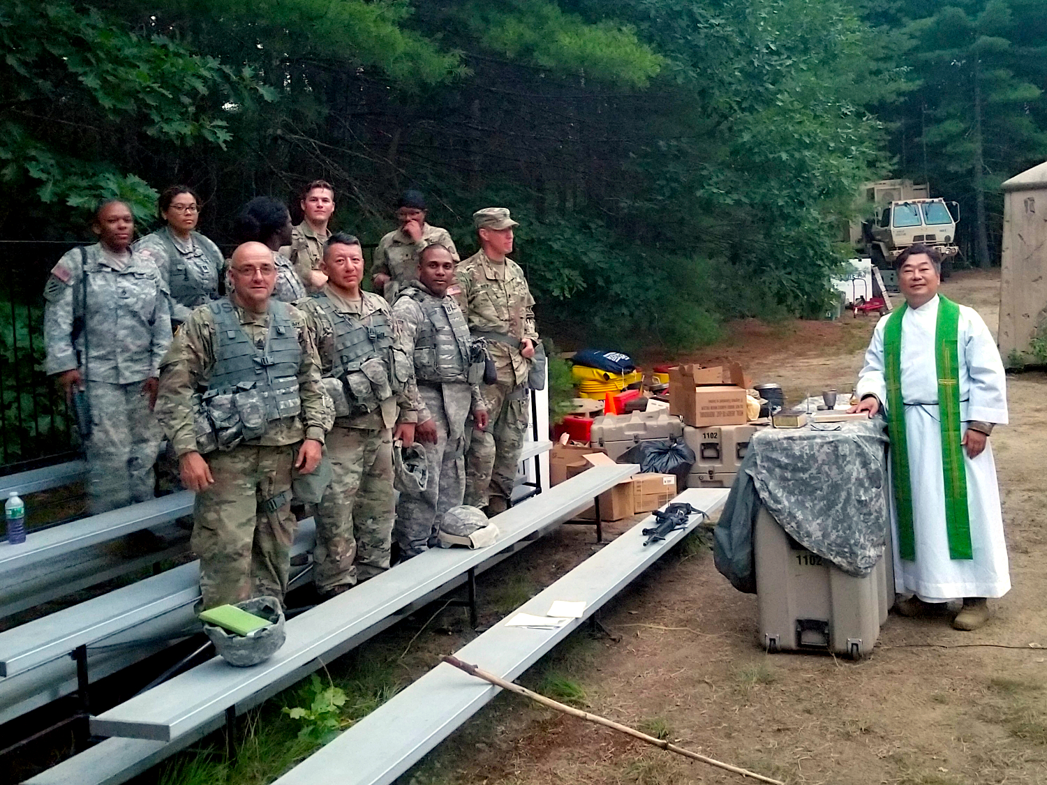 Featured image: Father Cho celebrates Mass in the field with the U.S. Army Reserve. (All photos courtesy of Father Minhyun Cho)