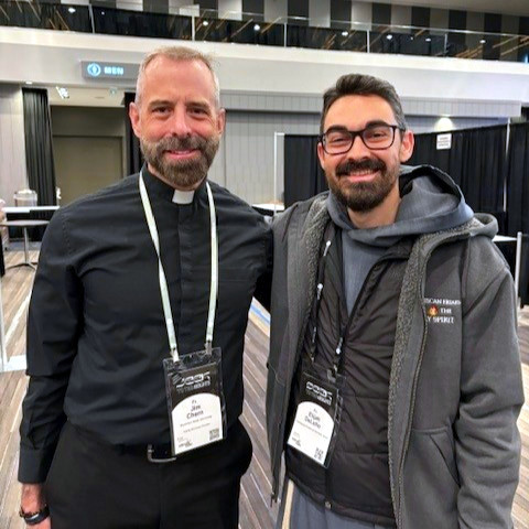 During the event, Fr. Chern encountered several former students he had ministered to at Montclair State University (MSU). “I ran into alumni now serving as missionaries on campuses across the country and others who are married and working full-time in campus ministry,” Fr. Chern said. In a “particularly moving moment,” he crossed paths with Fr. Elijah DeLello, a recently ordained Franciscan Friar of the Holy Spirit, who graduated from MSU in 2012.