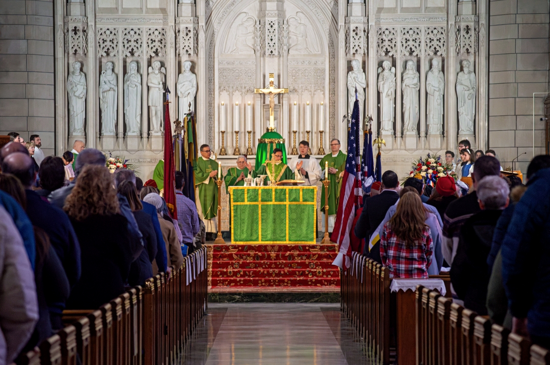 Relatives of the chaplains and servicemembers who died on the Dorchester attended the liturgy. They were joined by veterans, current servicemembers, Scouts, bagpipers, parishioners, and community members who are still moved and inspired by the story of the Four Chaplains.