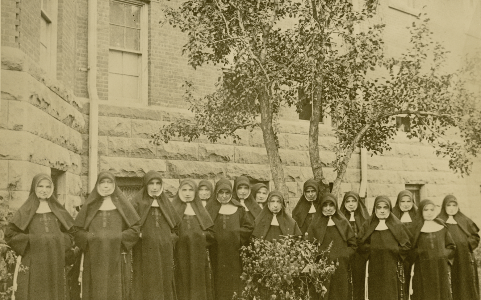 A group of Sisters of the Poor of St. Francis is pictured outside St. Michael’s Hospital, Newark. The Sisters established the hospital in 1867 to serve the needs of the city’s poor and immigrant population. (Archdiocese of Newark Archives, photograph collection)