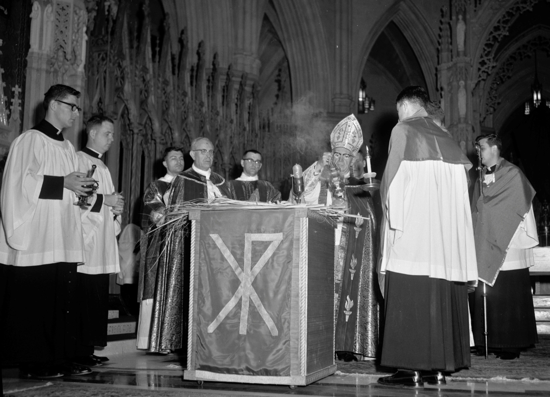 Archbishop Thomas Aloysius Boland blesses the Palms during a Palm Sunday Mass at the Sacred Heart Cathedral in 1965.