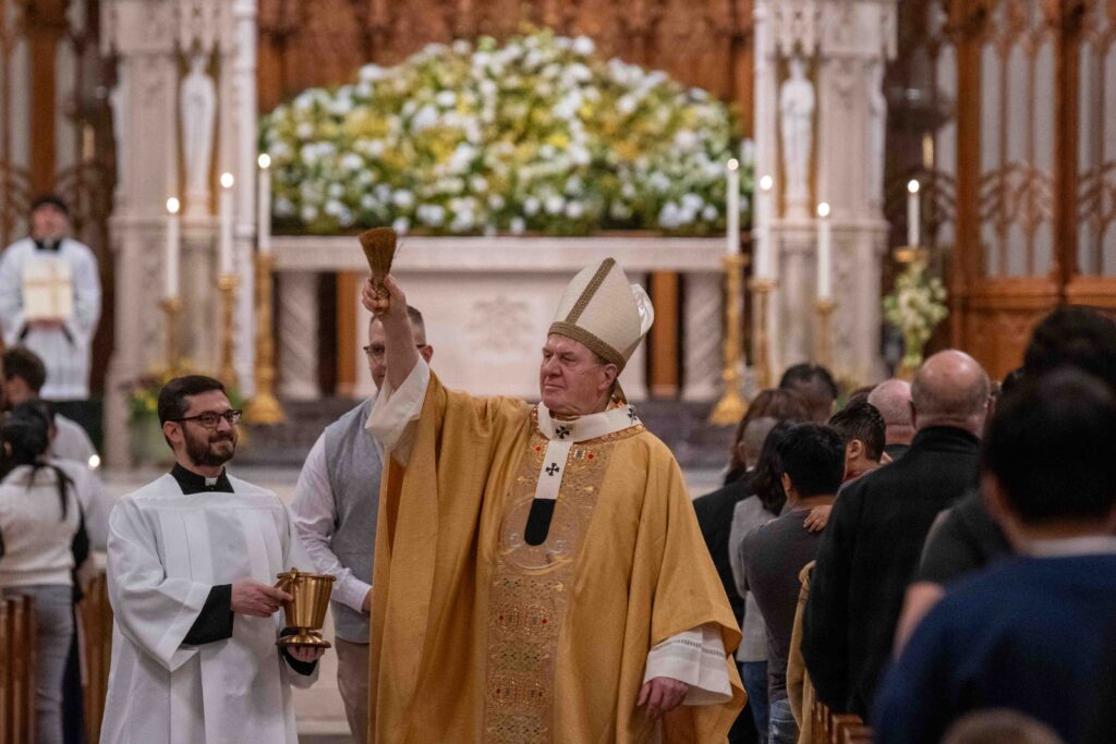 Cardinal Tobin commemorated the baptism with sprinkling the people with Holy water.