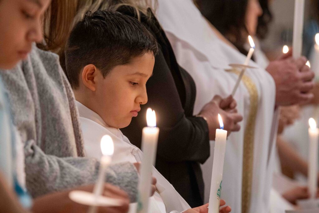 On Holy Saturday, the 18 catechumens received the three sacraments of initiation into the Catholic Church — baptism, confirmation, and the first Communion.