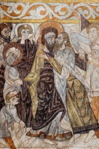 At the Last Supper with his disciples, Jesus breaks bread and passes around wine, foretelling his sacrifice as the Lamb of God. According to Luke 22, “And he took bread, and when he had given thanks, he broke it and gave it to them, saying, ‘This is my body, which is given for you. Do this in remembrance of me.’ And likewise, the cup after they had eaten, saying, ‘This cup that is poured out for you is the new covenant in my blood.’”