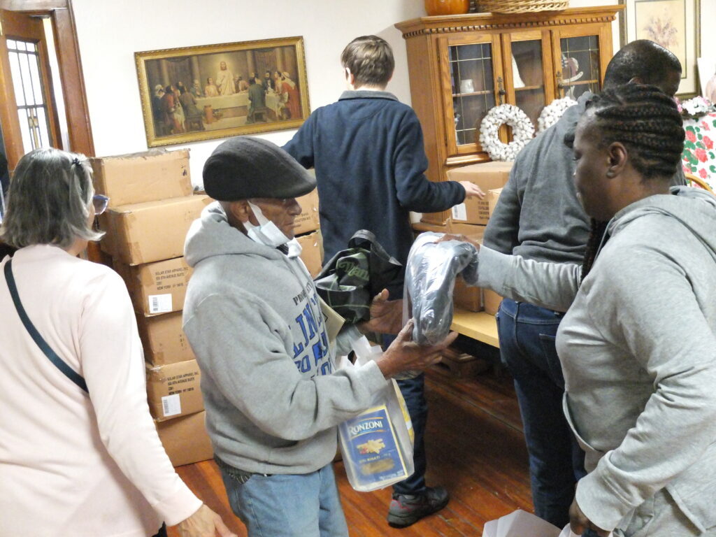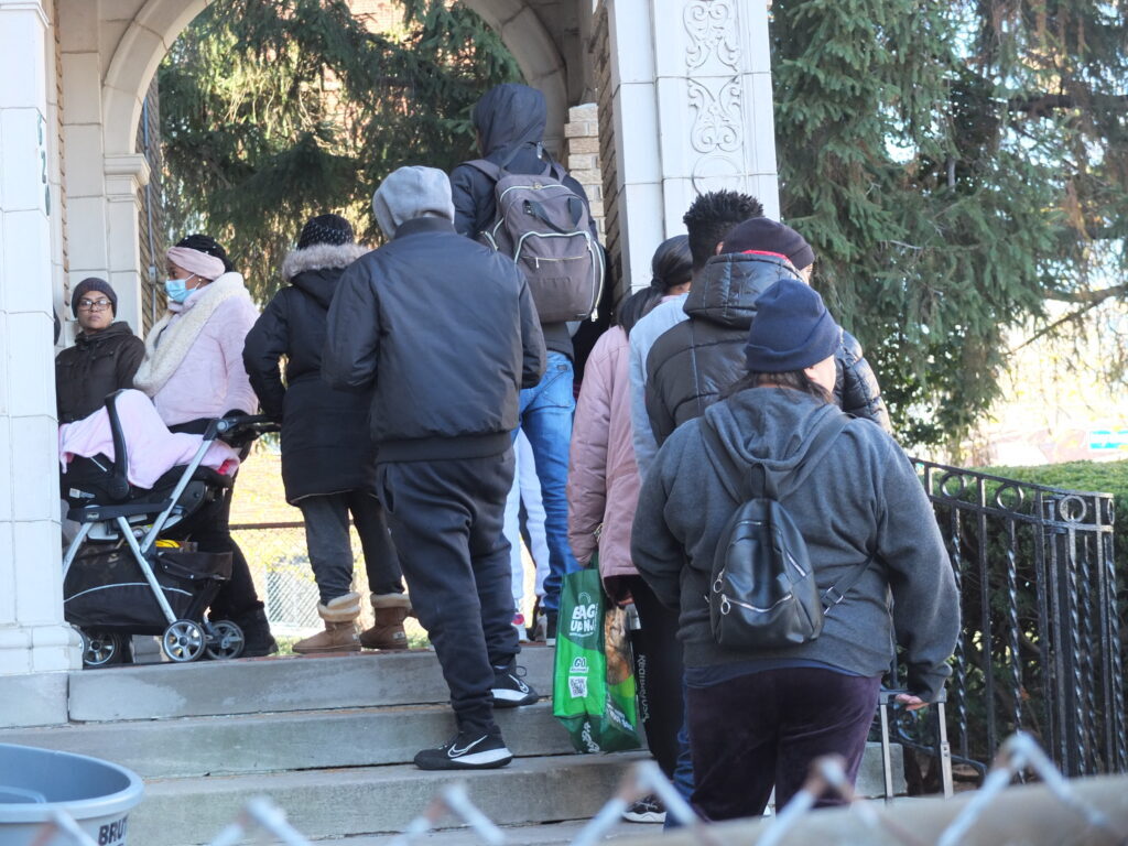 People lined up on Clinton Avenue outside of The Mercy House up to three hours in advance of the 11 a.m. giveaway. Recipients included families, single adults, and residents of local halfway houses.