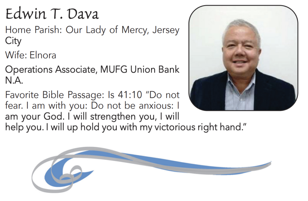 I had answered this call in 2015 after serving so many years of steadily increasing involvement with my faith, together with my wife, Nora. We had been members and leaders in the Christian community, and I served my parish by proclaiming God’s word as a lector, and Nora and I would serve together by participating in the Eucharistic Feast as extraordinary ministers of Holy Communion. Later, my pastor, Father Marty Jacinto at Our Lady of Mercy, would get me further involved as the coordinator for Bereavement Ministry.