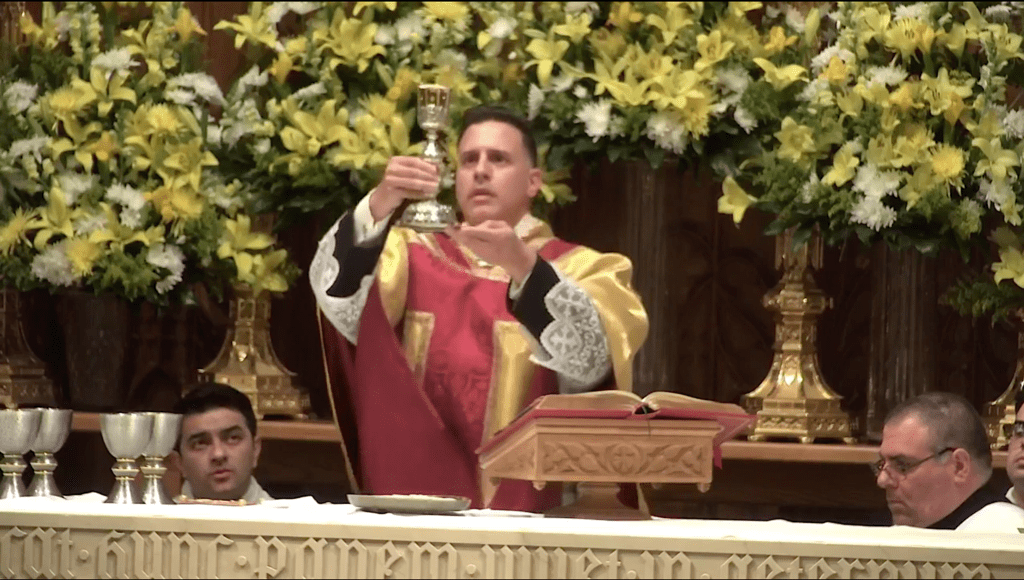Father Lynx Soliman celebrates his First Mass at the Cathedral Basilica of the Sacred Heart in Newark following his ordination in May of 2021.