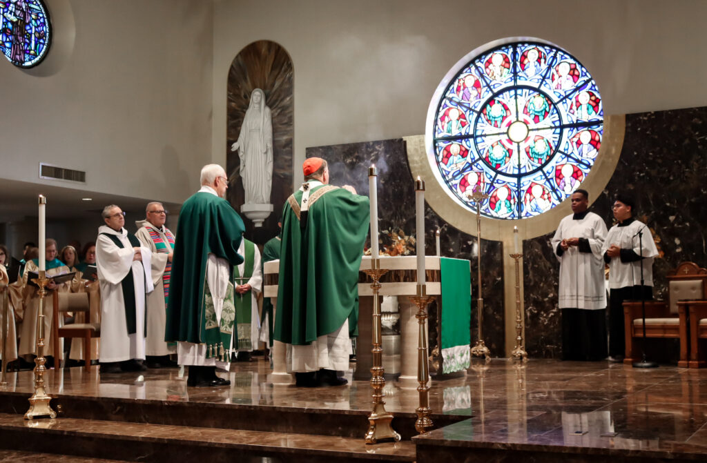 Featured image: Cardinal Joseph W. Tobin, Archbishop of Newark (center), presides over a Diamond Jubilee Mass celebrating the 75th anniversary of Scotch Plains’ St. Bartholomew the Apostle Church on November 19, 2023. (Photo courtesy of St. Bartholomew the Apostle Church)