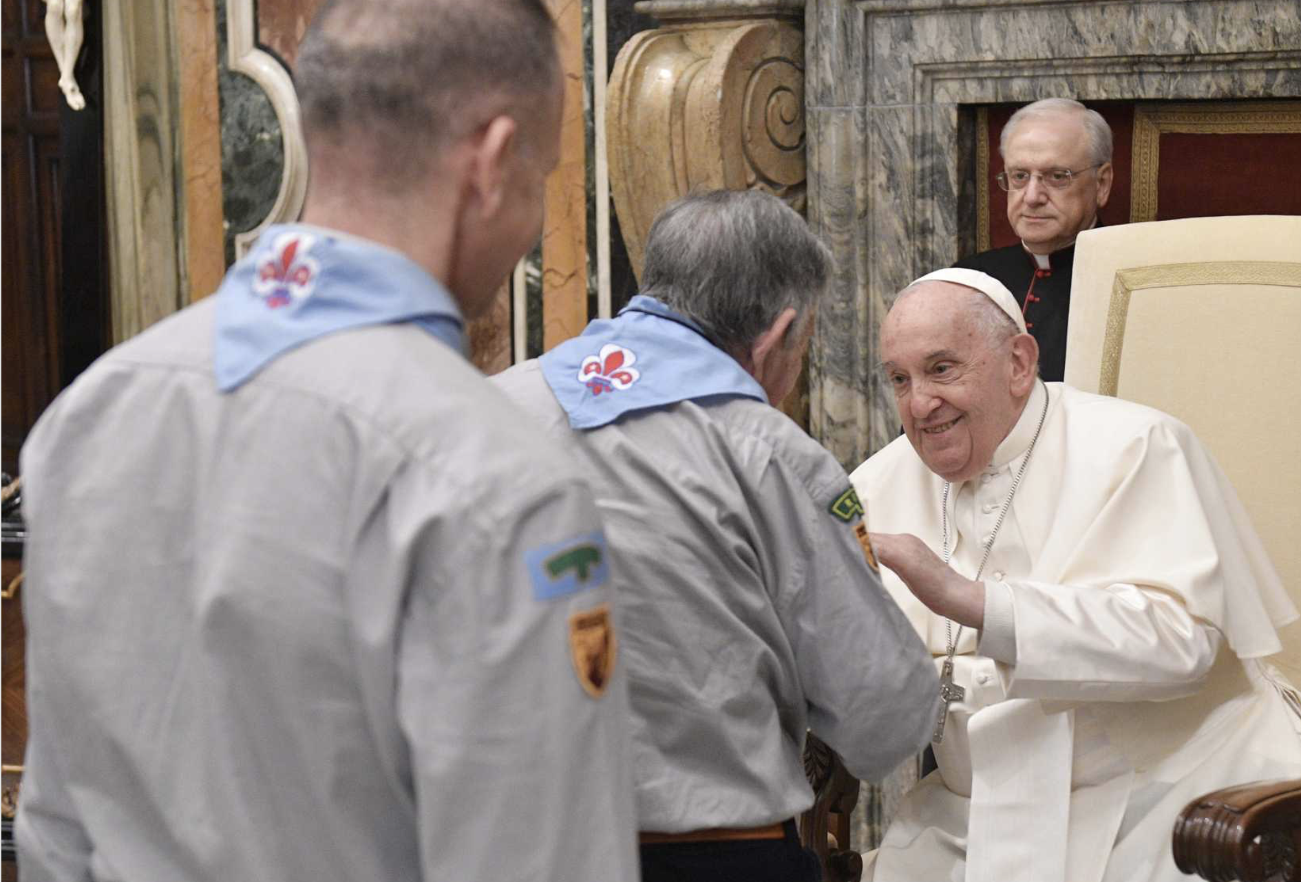 Featured image: Pope Francis greets members of the Italian Catholic Movement of Adult Scouts during a meeting at the Vatican April 13, 2023. (CNS photo/Vatican Media)