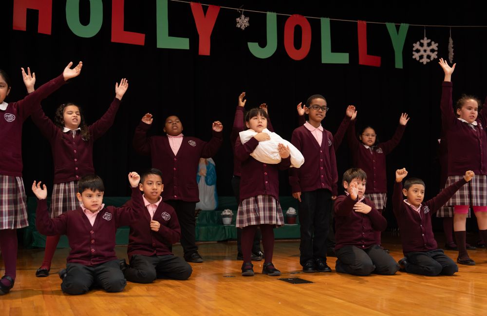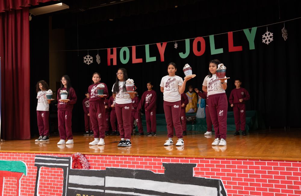 Nearly 100 students also showcased their talents, singing and dancing to holiday classics like “A Holly Jolly Christmas.” One especially creative skit featured a group of students traveling to the stage in a handcrafted model of the Polar Express.