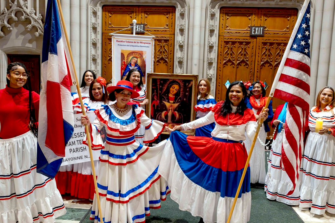 Featured image: Worshippers pose with an image of Our Lady of Altagracia during a Mass celebrated by the Dominican community at the Basilica Cathedral of the Sacred Heart in Newark, NJ, on Jan. 23. (Photo by Julio Eduardo Herrera / Archdiocese of Newark)