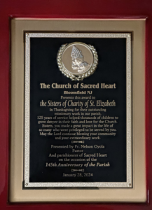 Father Oyola also commissioned a plaque as a tribute to the Sisters of Charity and their lasting contribution to the parish community.