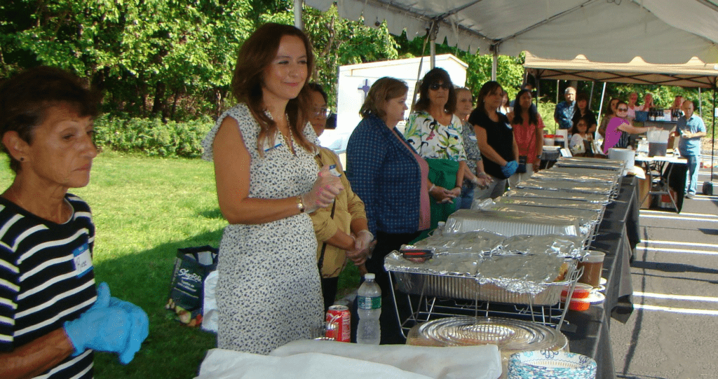 The festivities began at Mass when Bishop Elias R. Lorenzo, the Archdiocese of Newark’s auxiliary bishop for Union County, officially introduced Father David C. Santos as St. James’ new pastor. During his first address, Father Santos expressed his excitement about joining the parish while promising to work in partnership with its committees. Afterward, approximately 400 people commemorated the launch of St. James’ 100th anniversary year with a jubilant reception outside. The celebration attracted parishioners new and old as well as guests from nearby parishes — including Father John J. Paladino, Father Santos’ pastor when he was a parochial vicar at St. Bartholomew the Apostle Church in Scotch Plains.