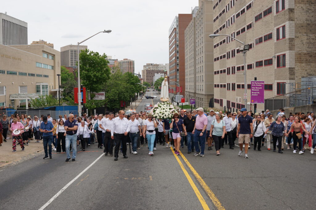 Hundreds walked four miles and prayed the rosary through the streets of Newark behind the Pilgrim Statue of Our Lady of Fatima on May 13 — the anniversary of Our Lady’s first apparition at the Cova da Iria in Fatima, Portugal, 106 years ago – during a special procession.