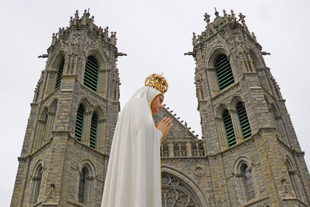 As Our Lady was carried into the Cathedral Basilica, the crowd belted out the hymn “Ave de Fatima,” or as it is known in English, “The 13th of May,” while waving white handkerchiefs. The hymn, sung in Portuguese, is synonymous with Fatima.